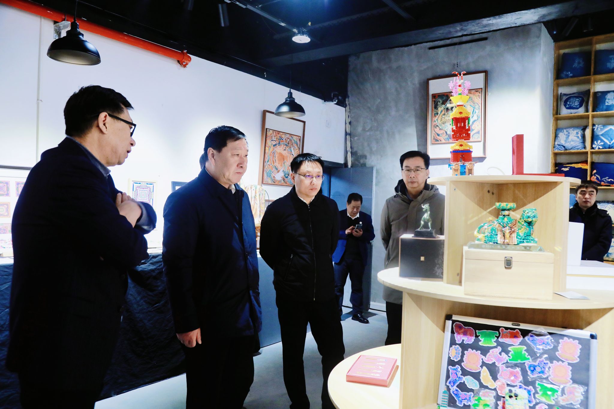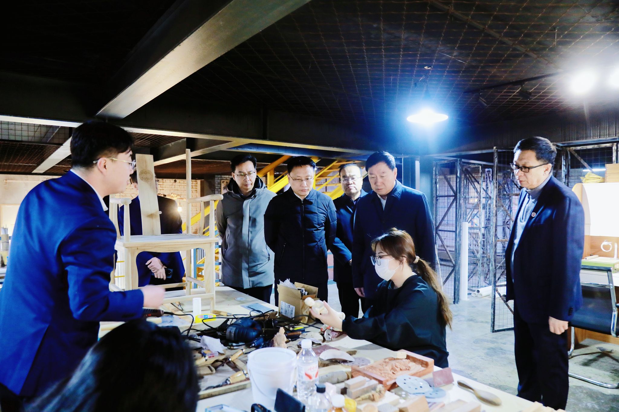 调研组参观了我校彩塑壁画研究所和美术系产教融合创新基地文创展区,详细了解美术系人才培养模式、课程设置等情况,近距离观摩了彩塑、壁画等传统工艺创作及文创产品研发成果,对工匠学院立足地方文化资源、深耕工艺美术传承创新实践给予高度认可。