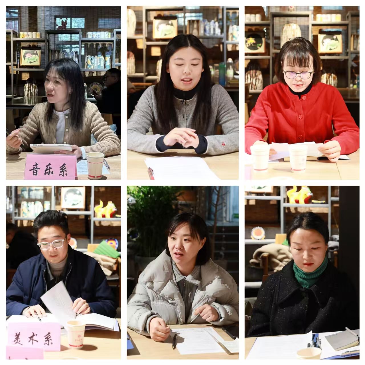 在交流环节,音乐舞蹈系教师谷芸芸、贾敬玉、王怡菲结合参赛经历,围绕音乐教学技能展示、艺术实践创新等方面分享体会;美术系教师付博、王静、贾慧芬从美术创作表达、教学方法创新等角度交流参赛心得与教学思考。与会教师的发言既有生动鲜活的实践案例,也有深入系统的理论思考,为进一步改进教学工作提供了有益借鉴。