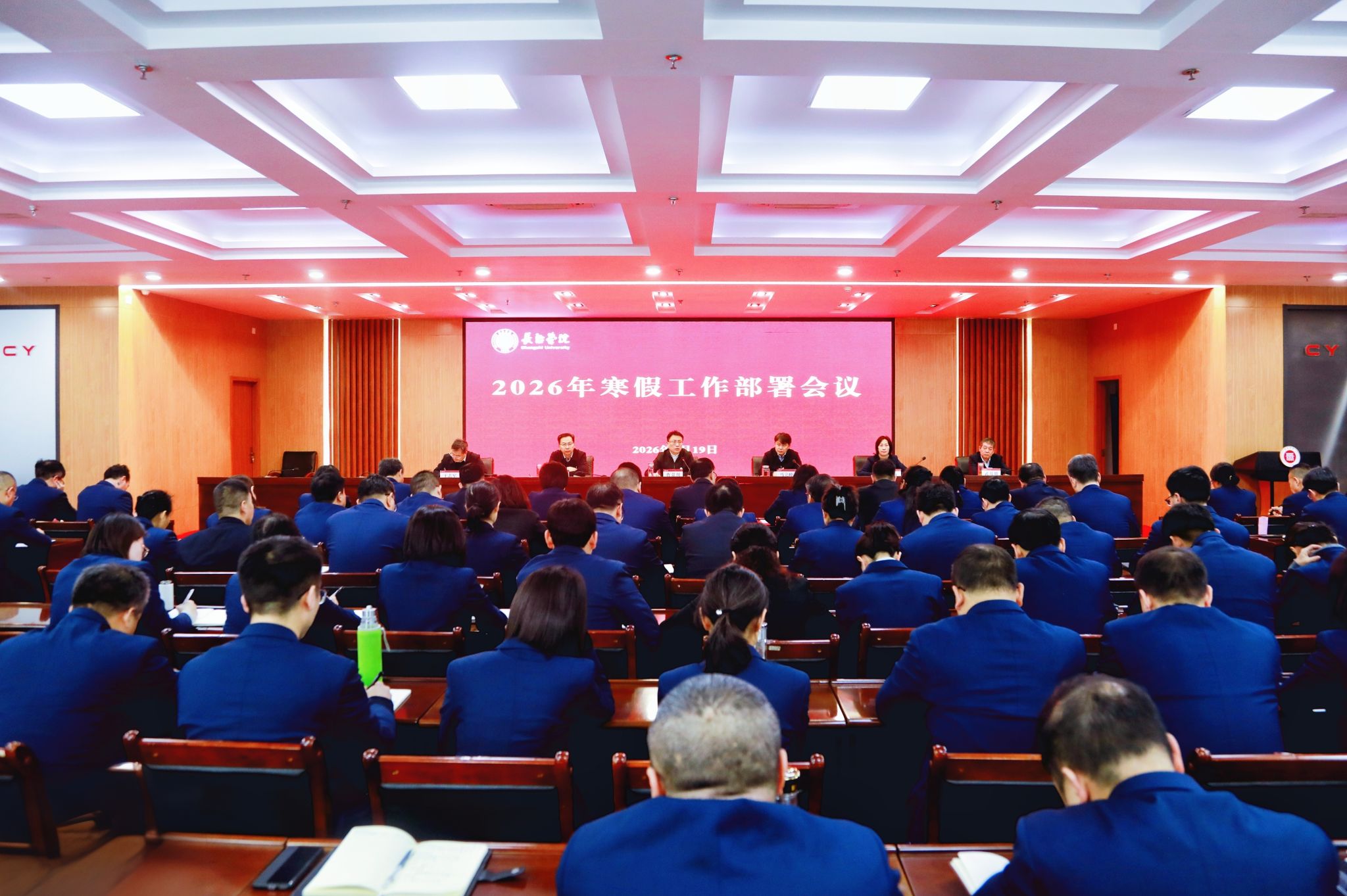 1月19日上午,学校召开寒假工作部署会。校领导曹景川、马立峰、史晓东、焦雨、王志军、武月明出席会议,全校副处级以上干部参加。会议由党委副书记、校长马立峰主持。校党委书记曹景川回顾了2025年学校在审核评估、硕单建设、新校区建设、教学科研、学生竞赛等方面取得的突破性进展,结合2026年工作计划,对假期重点工作做出部署。他强调,一要坚守安全责任,筑牢稳定根基。要深刻理解、自觉践行“大安全观”,守护校园总体安全,防范各类风险隐患。...