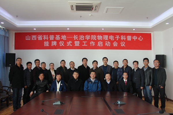 3月9日上午,山西省科普基地—长治学院物理电子科普中心揭牌仪式暨工作启动会议在我院召开。省物理学会理事长、山西大学副校长张天才教授,省物理学会秘书长李秀平教授,我院党委委员、副院长赵巨涛,长治市科技局局长方晋斌,共青团长治市市委副书记上官瑞平及市内各高中校领导参加此次会议。科研处王志军副处长主持会议。