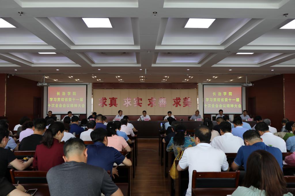 郝勇东就学习贯彻楼阳生书记在省委十一届十次全会上的讲话精神和会议精神提出三点要求。第一,全校上下要深入全面贯彻好省委十一届十次全体会议精神,把学习好、贯彻好习近平总书记视察山西重要讲话重要指示作为当前和今后一个时期的首要政治任务,深刻领悟博大内涵,坚定扛起重大使命,持续推动习近平总书记重要讲话重要指示在长治学院落地生根、开花结果。第二,要深刻理解“在转型发展上率先蹚出一条新路来”这一重大指示要求蕴含的历史意义、赋予的历史使命,进一步增强学习贯彻落实的政治自觉和行动自觉,精准谋划学院未来发展方向,努力在“六新”上不断取得突破,蹚出一条符合长院实际、具有长院特色的转型发展新路子。第三,要深刻把握习近平总书记对山西工作提出的总体要求和重大任务,认真贯彻省委实施方案提出的各项落实举措,主动对号入座、对标对表,进一步强化目标导向、问题导向、结果导向,确保习近平总书记重要讲话重要指示条条落实、件件落地、事事见效。