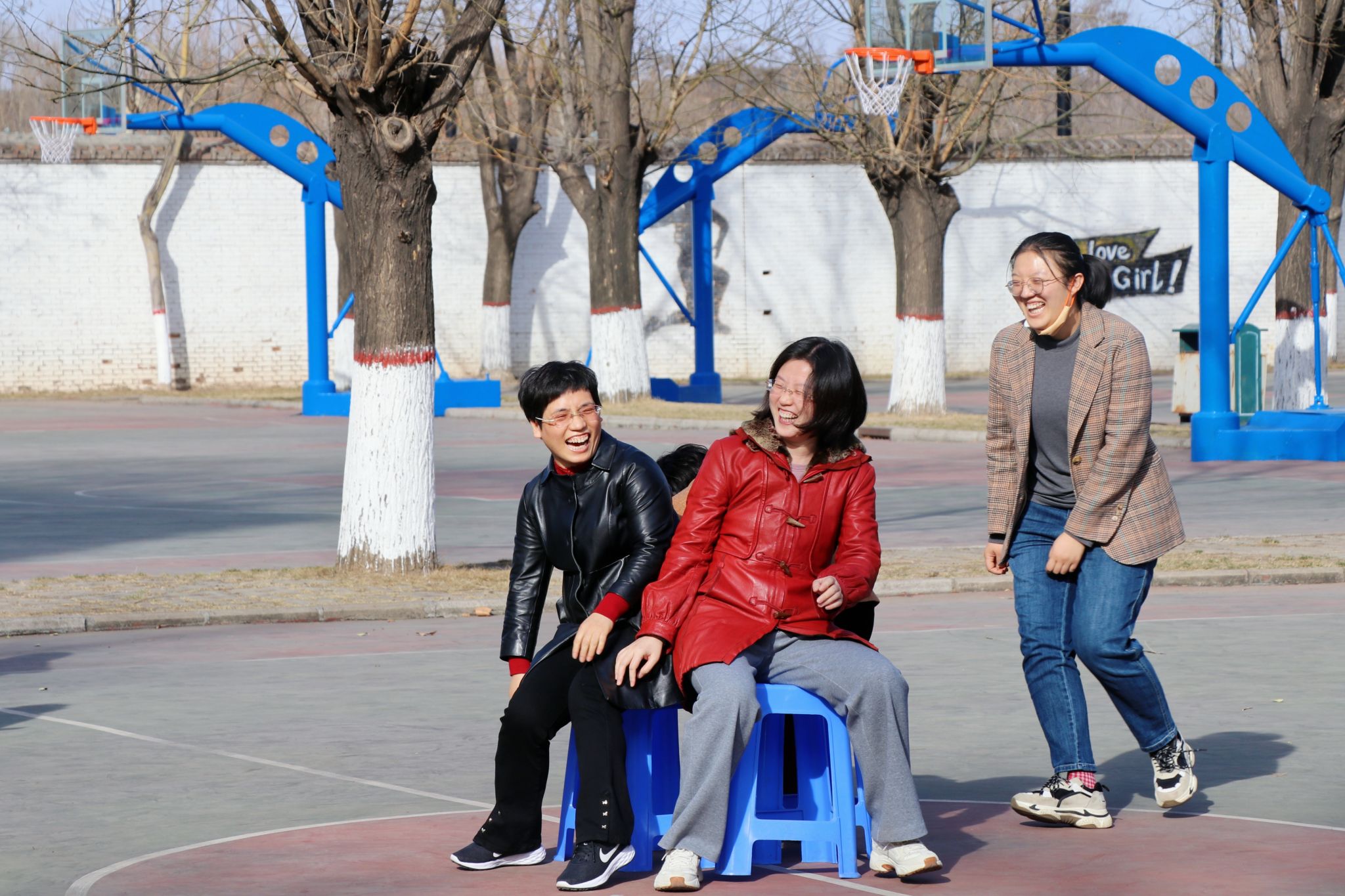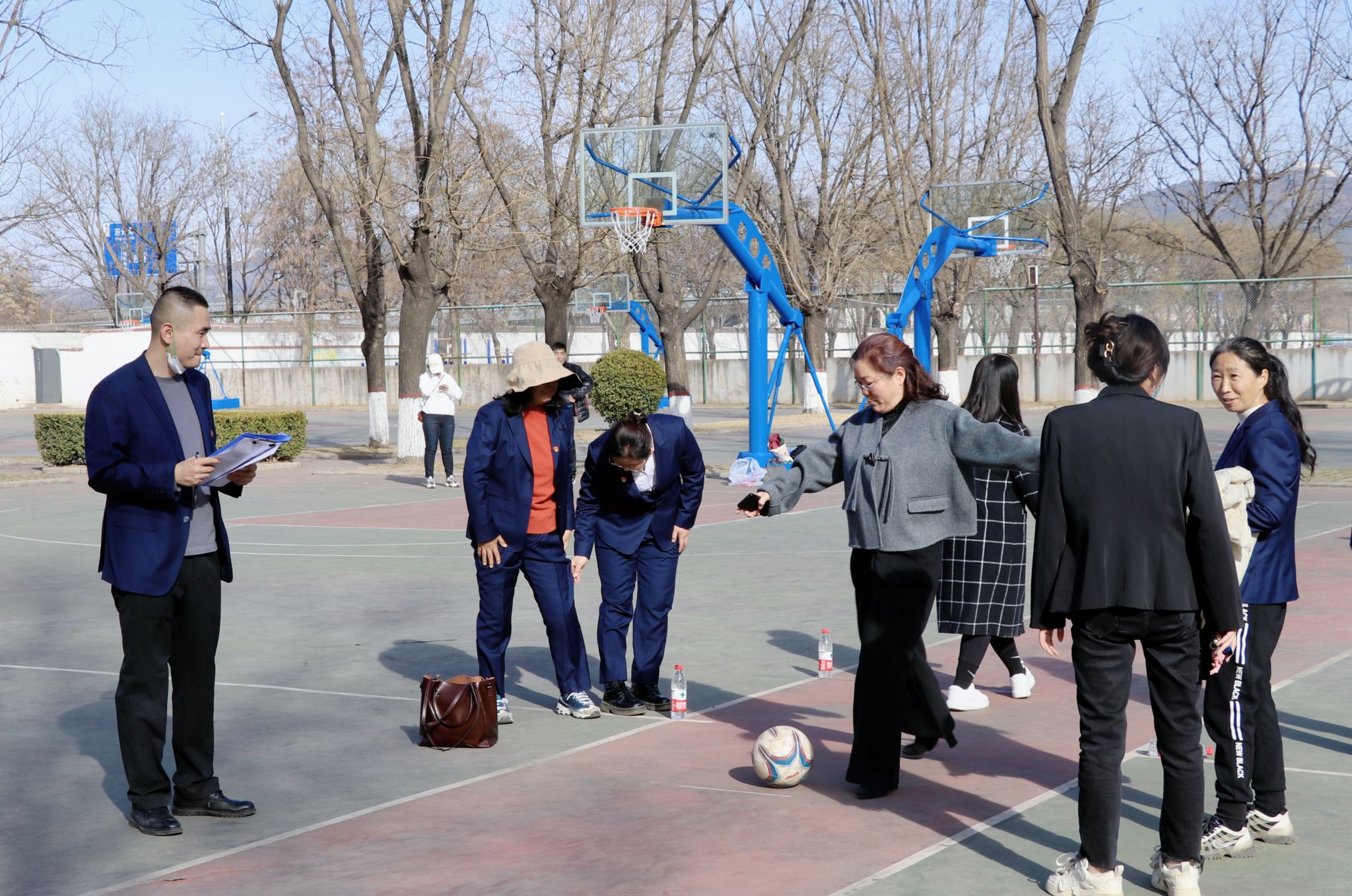 3月7日下午,在北校区篮球场举办趣味运动会。校长曹景川,党委副书记宋志燕莅临现场观看比赛,为参赛教职工加油鼓劲。广大女教职工踊跃参与活动,以饱满的热情,在跳绳团体赛、夹乒乓球团体接力赛、模拟保龄球、足球射门、抢凳子等项目上大显身手。篮球场上,参赛队员享受着运动的快乐,鼓掌声、喝彩声,此起彼伏,气氛紧张而又活泼。