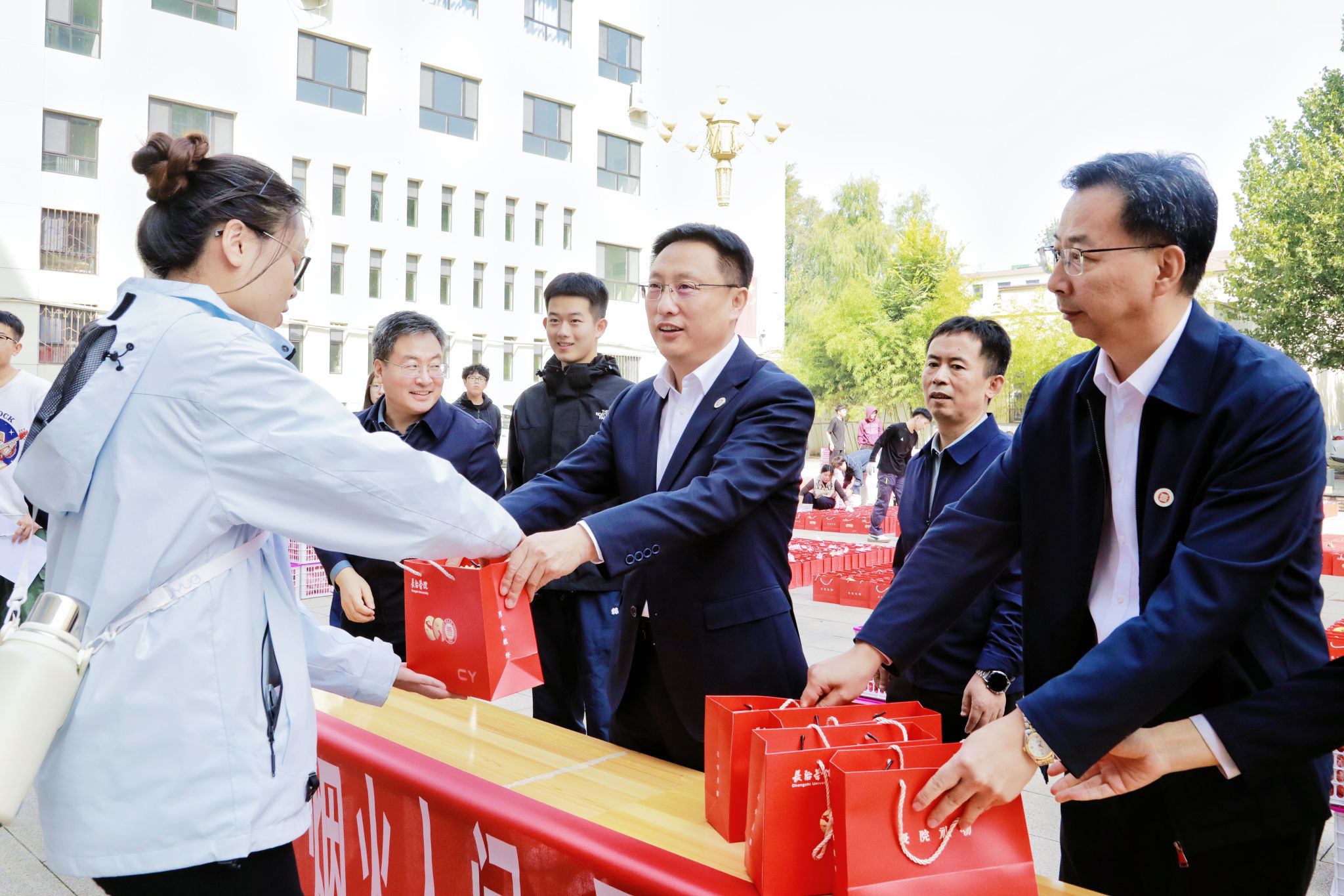 以爱之名,情暖长院。9月29日上午,在中秋佳节来临之际,校领导曹景川、史晓东、焦雨、王志军、武月明深入学生中开展慰问工作,为学生发放了精心准备的专属中秋礼盒,将浓浓的关怀传递给每一位学子。党委办公室、校长办公室、党委宣传部、学生工作部等相关部门陪同慰问。