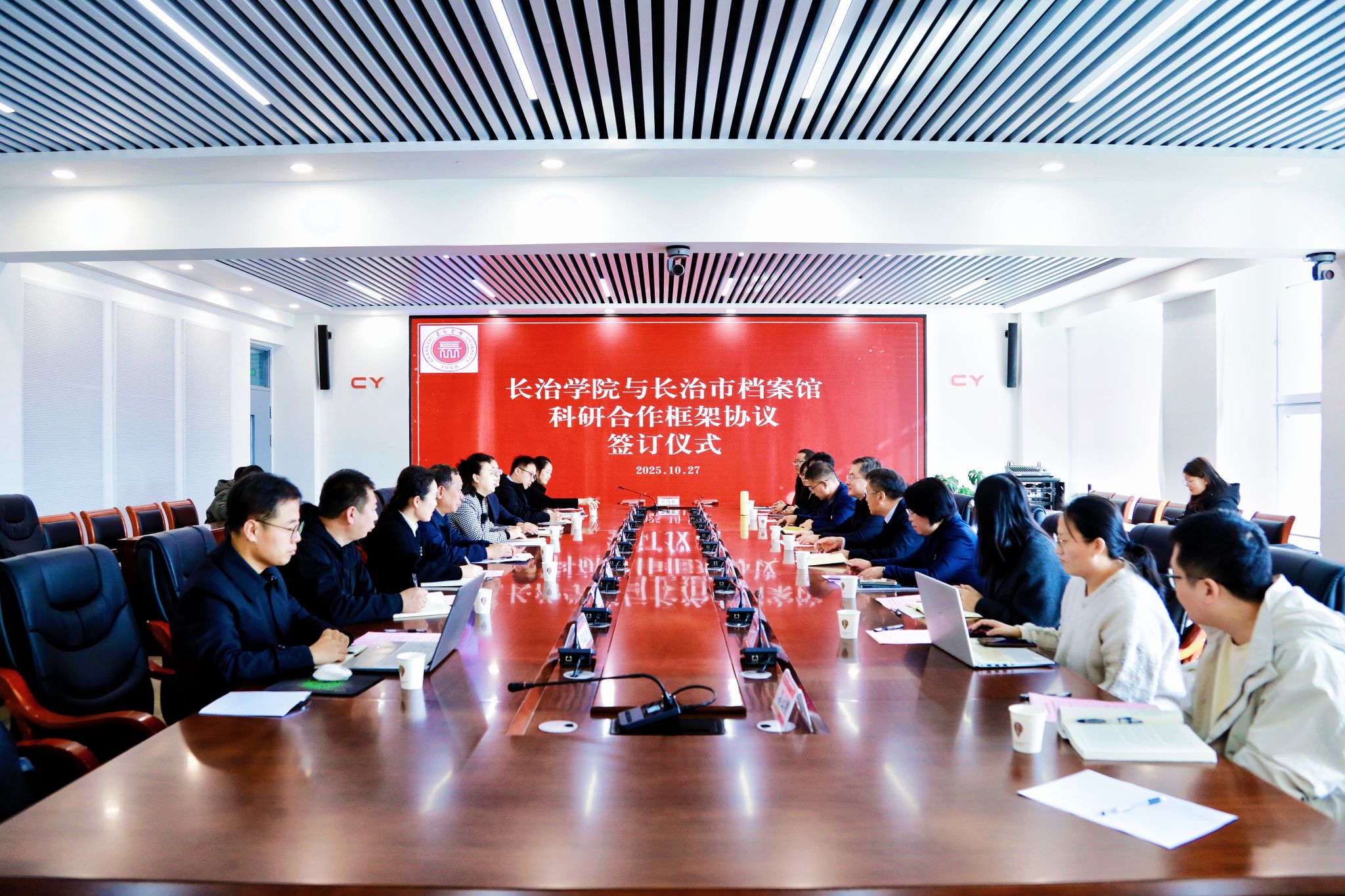 10月27日下午,我校与长治市档案馆科研合作框架协议签订仪式在南校区2号会议室举行。校党委委员、副校长王志军出席活动。长治市档案馆馆长谢惠兰、副馆长陈虹,相关科室负责人、业务骨干,与我校科研部、历史与旅游管理系班子成员及教师代表参加会议。