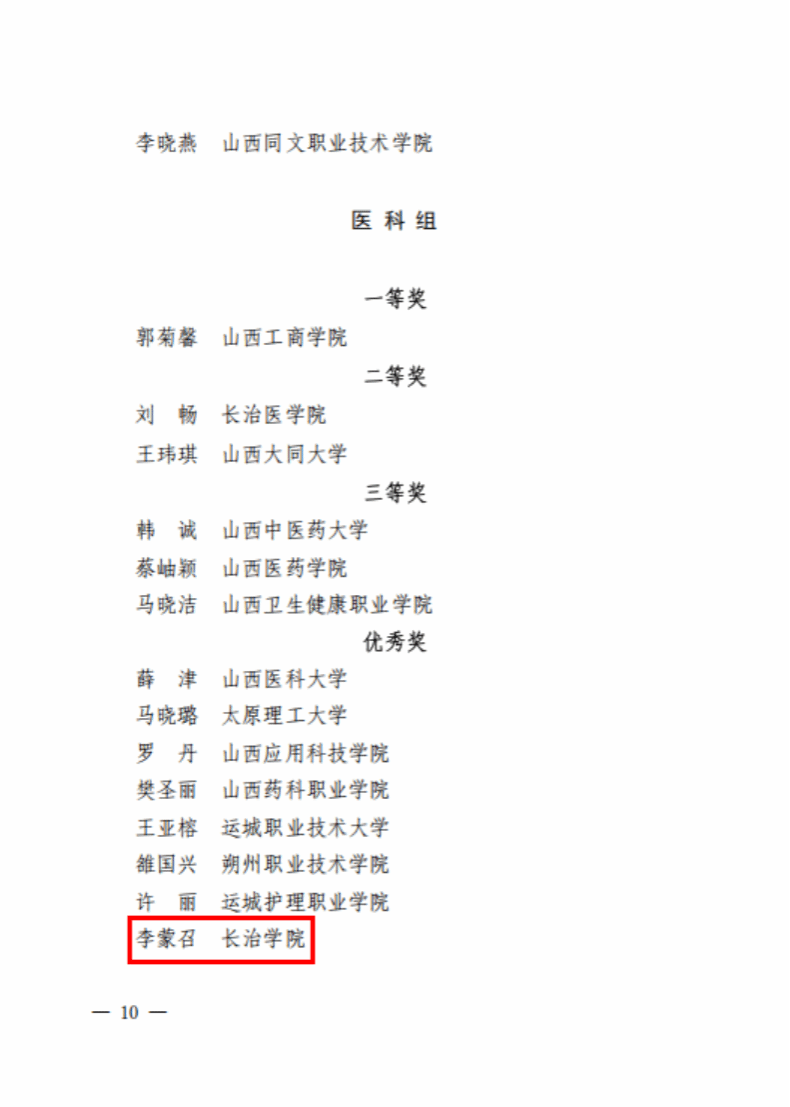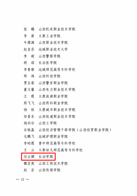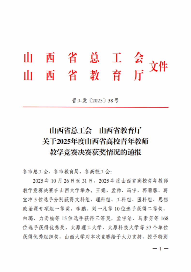 10月26日至10月31日,由山西省总工会、山西省教育厅、山西省教科文卫体工会主办的2025年度山西省高校青年教师教学竞赛决赛在山西大学举行。我校教师王晓霞、刘琳、李蒙召、刘云卿分别参加理科、工科、医科、思想政治四个组别赛事。经过激烈角逐,王晓霞获理科组三等奖,刘琳、李蒙召、刘云卿分别获得工科组、医科组、思政课组优秀奖。长治学院获优秀组织奖。
