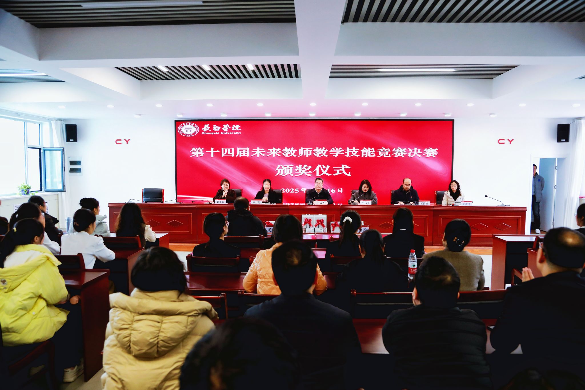 近日,我校第十四届未来教师教学技能竞赛在南校区1号会议室落下帷幕。校党委委员、副校长王志军出席,教务部工作人员、各院系参赛师生参加闭幕式,教务部负责人主持仪式。
