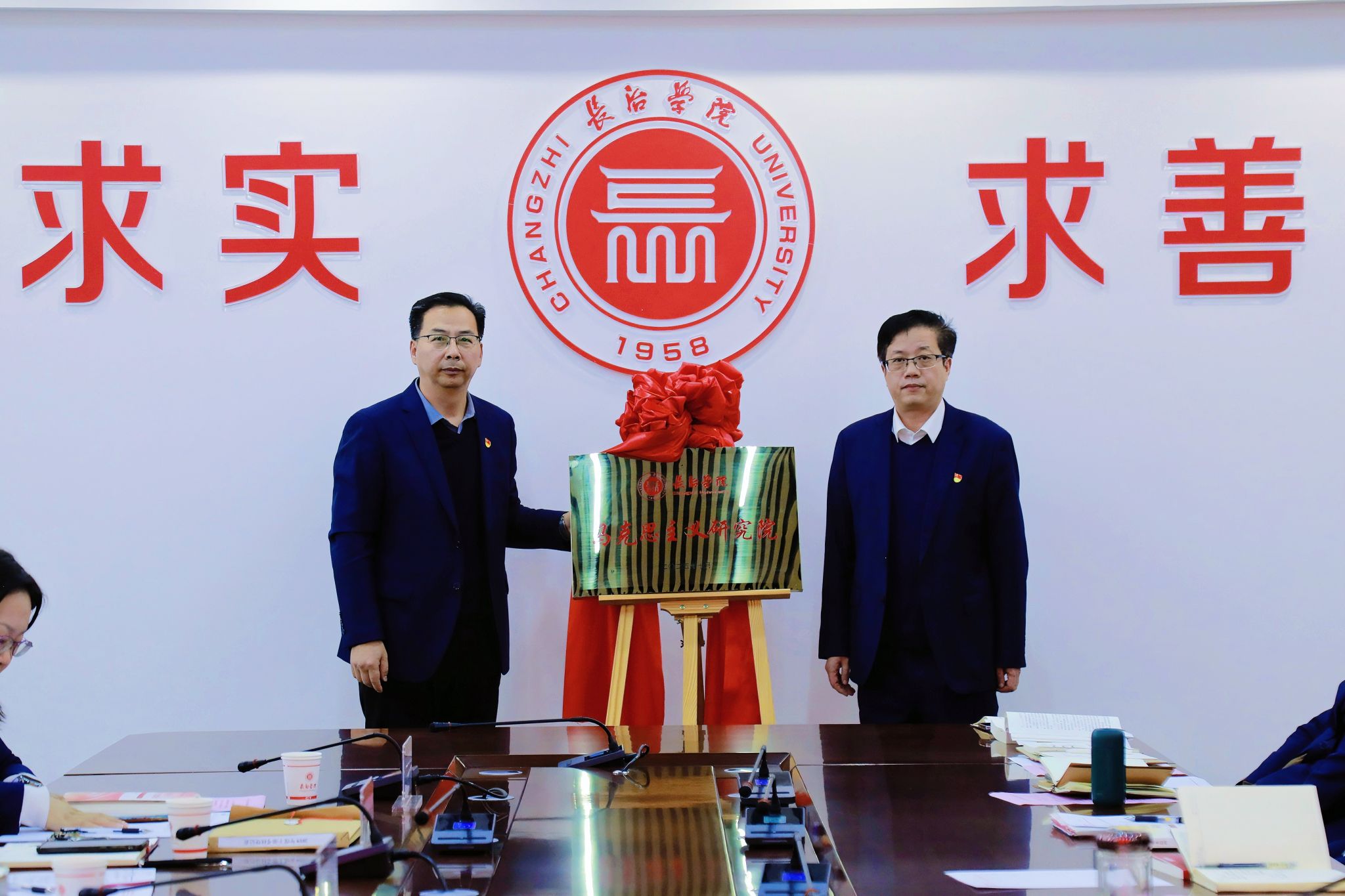会上,史晓东为“马克思主义研究院”揭牌,希望马克思主义学院能够以此次入选我省首批“马克思主义研究院”为契机,始终胸怀“国之大者”,进一步加强学科交叉融合,加强马克思主义课程群和学科群建设,推动更多研究成果转化为优质教学资源和智库成果。