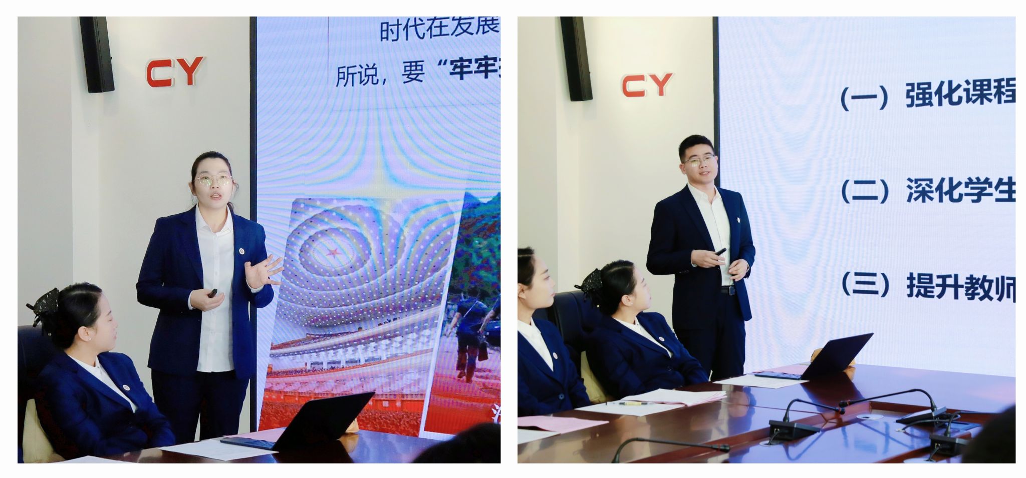 宣讲结束后,与会人员围绕学习内容进行了深入交流,聚焦“为什么融、融什么、如何融”,就如何将党的二十届四中全会精神融入思政课进行了集体备课研讨。《习近平新时代中国特色社会主义思想概论》课程组负责人程雅娟就融入情况进行了教学展示。其他思政课课程组负责人文永刚、马晨曦、李少伟、蒋承伟,分别结合各自课程情况,就融入思路、教学方法、案例建设等进行了专题汇报。