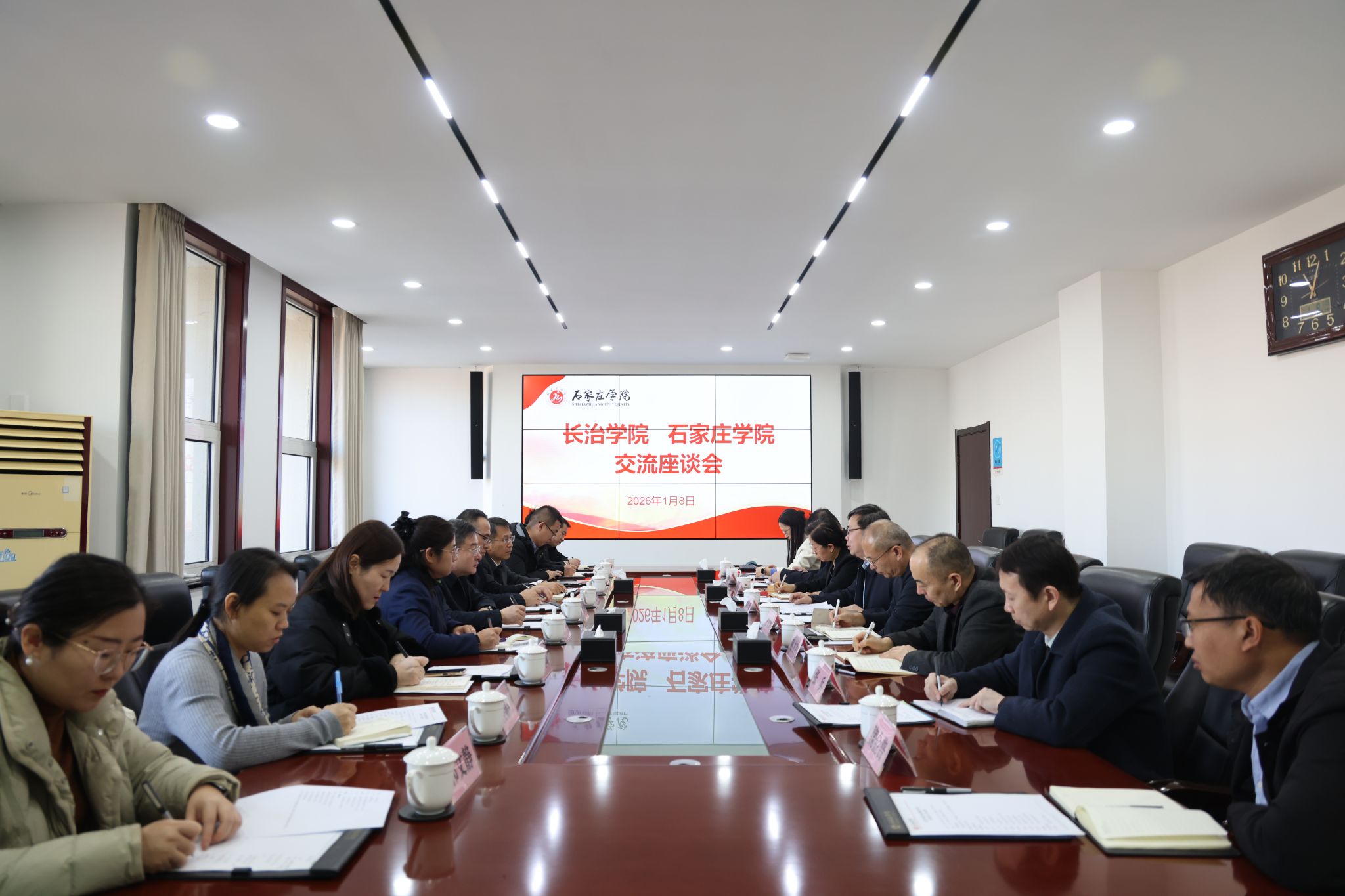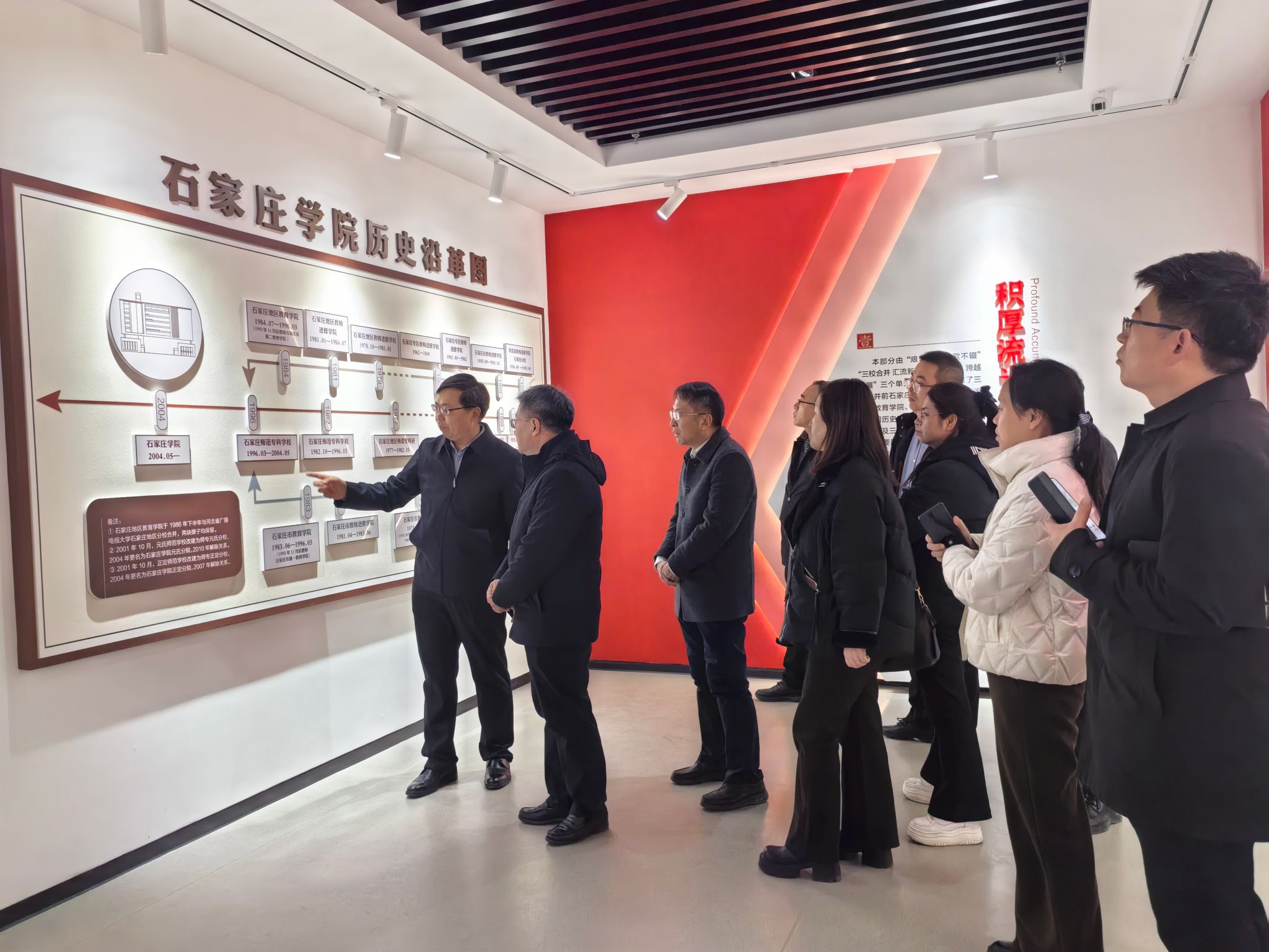 在石家庄学院,副校长冯宝强对我校一行表示热烈欢迎,双方围绕应用转型、产教融合、“十五五”规划编制、学科专业优化调整等进行了座谈交流。双方表示,两校作为同年建校、同年升本的地方应用型本科院校,面临相似的发展机遇与挑战,石家庄学院在内涵建设、质量提升等方面的经验对我校具有重要借鉴意义。会后考察了石家庄学院校史馆、石家庄地域文化馆、融媒体中心、产教融合创新基地,并达成了进一步加强校际交流合作的共识。