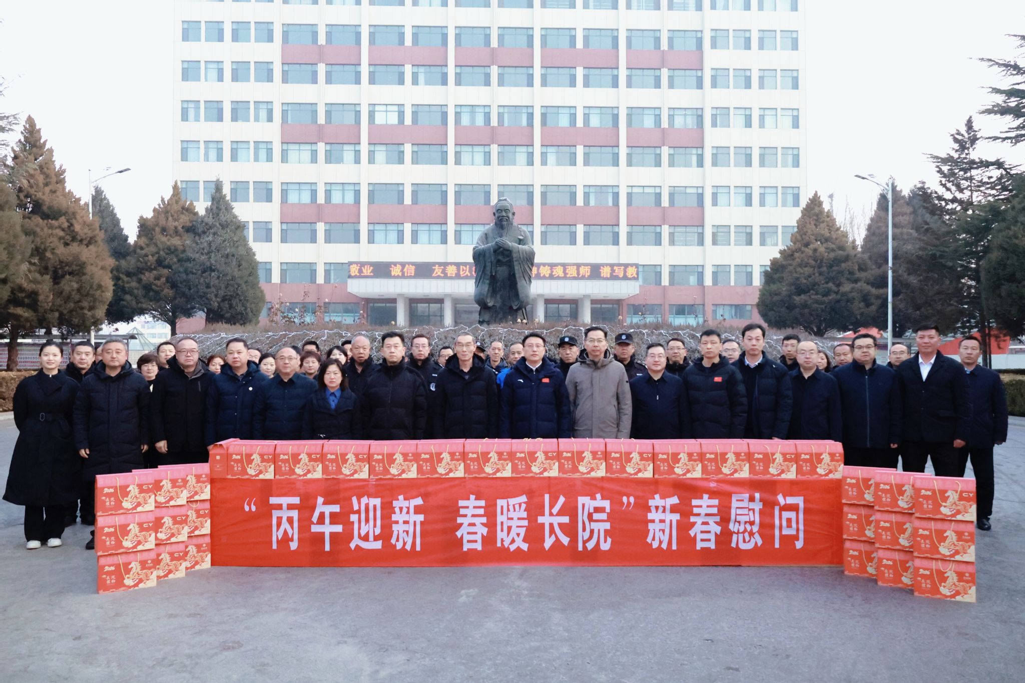 春风策马送暖来,长院情深迎福至。2月10日上午,在新春佳节即将到来之际,校领导带队开展新春走访慰问活动。党委办公室、校长办公室、纪检监察办公室、党委组织部、党委宣传部、人力资源部、后勤部、保卫部、离退休人员管理部、工会等相关单位负责人陪同慰问。