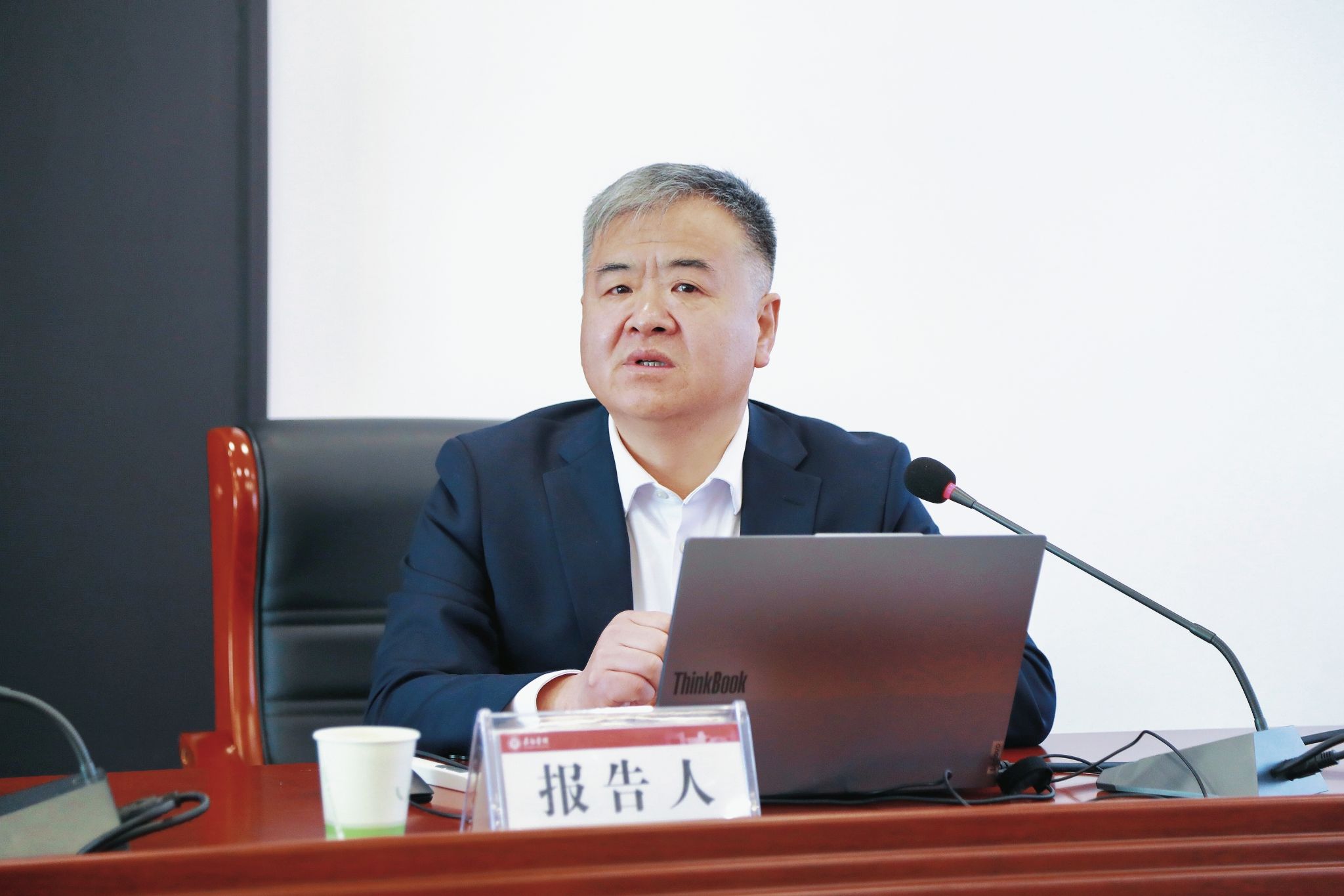 闫向军以“旧貌新颜:太行山遗产保护”为题开讲。他从长治堆锦的历史渊源和发展脉络讲起,深入剖析其艺术特色,生动阐释了堆锦“以绸为纸、以锦为墨、堆叠成型”的独特工艺以及兼具绘画意境与雕塑立体感的艺术特质。同时,闫向军结合自身实践,分享了堆锦技艺在现代文创、文旅融合等领域的创新应用,让在场师生深刻体会到非遗技艺中蕴含的工匠精神与文化底蕴。