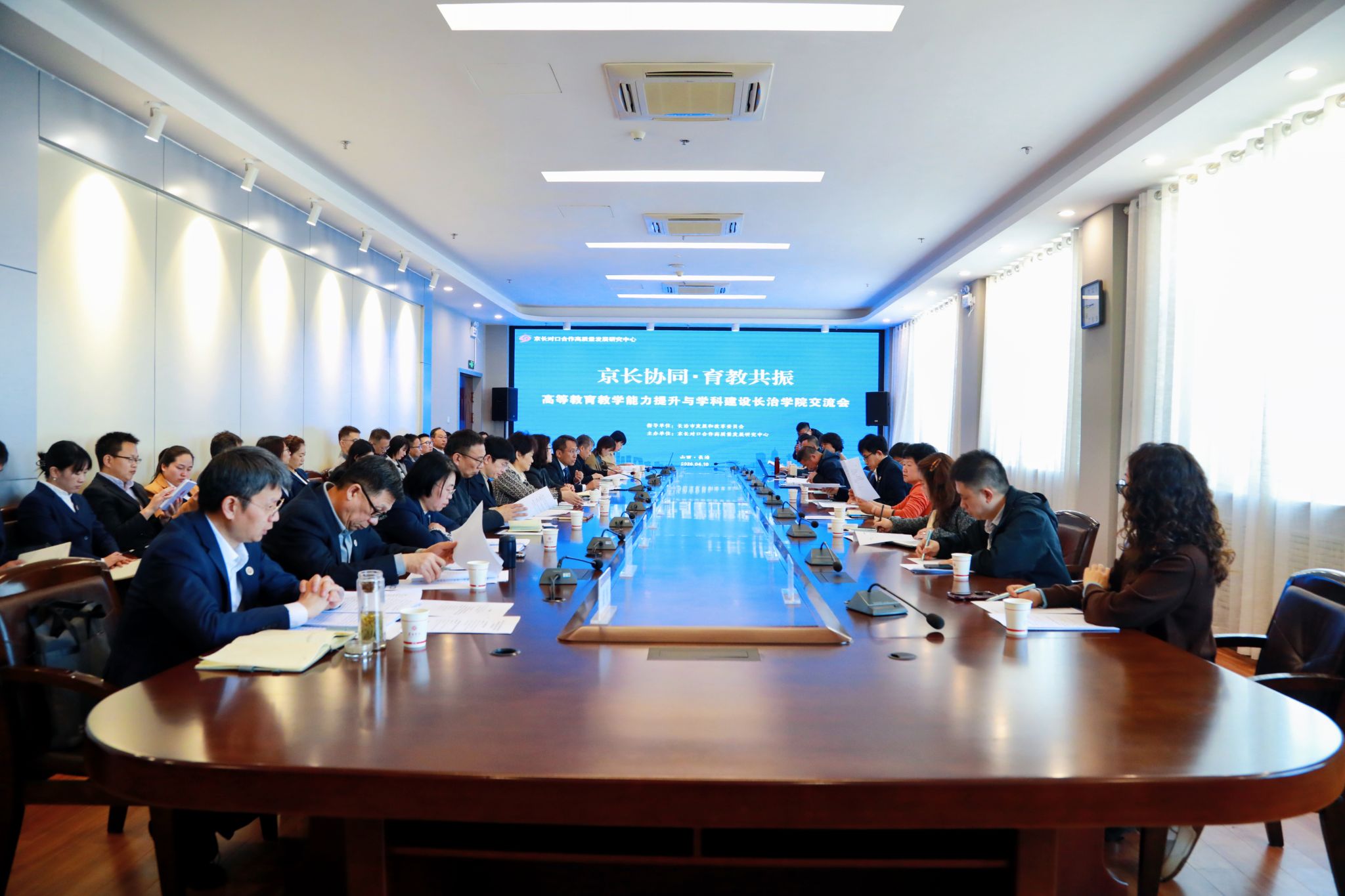 为切实推进京长对口合作,精准对接地方高校学科发展需求,全面提升教学能力与学科建设水平,4月10日上午,“京长协同・育教共振”高等教育教学能力提升与学科建设交流会在我校北校区1号楼2号会议室召开。北京理工大学材料学院教授、博士生导师钟海政,北京化工大学化学工程学院教授、博士生导师刘广青,北京石油化工学院教授姚志龙,北京联合大学艺术学院表演系教授王彦霞等10位来自北京多所高校专家学者,长治市发展和改革委员会民营经济发展中心主任桑爱斌,长治市人才集团副总经理韩慧芳等相关领导,我校历史与旅游管理系、音乐舞蹈系、美术系、物理系、化学系、生命科学系负责人,教师代表参加会议,共商校地合作、学科共建、人才共育。交流会由科研部部长主持。