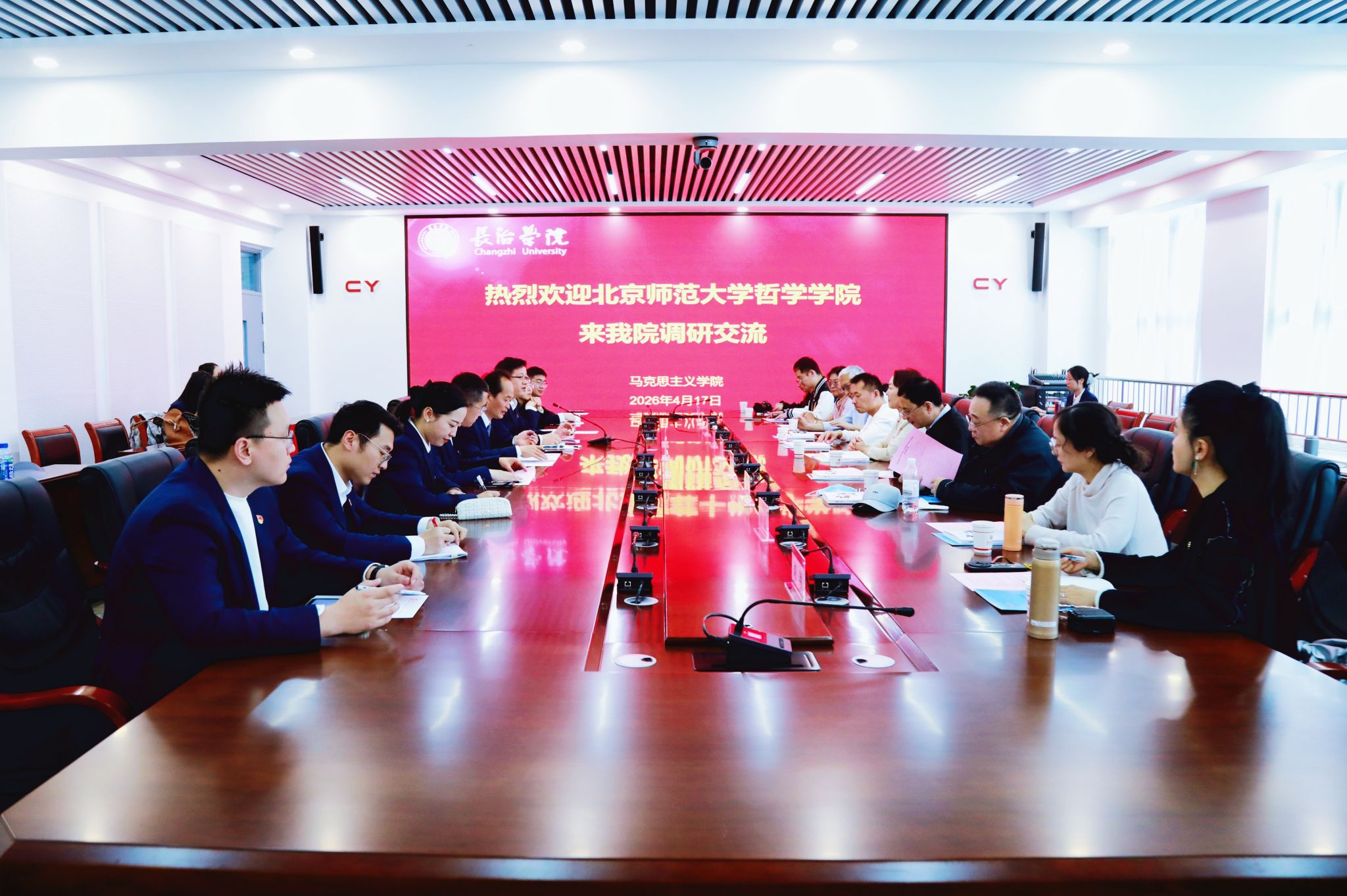 4 月 17 日,北京师范大学哲学学院党委书记李红、副院长郭佳宏、党委副书记赵猛及教师代表一行莅临我校,与马克思主义学院开展联学调研交流。校党委书记曹景川会见李红一行并亲切交流。我校马克思主义学院党政负责人、教师代表参加座谈,我校马克思主义学院主任主持会议。