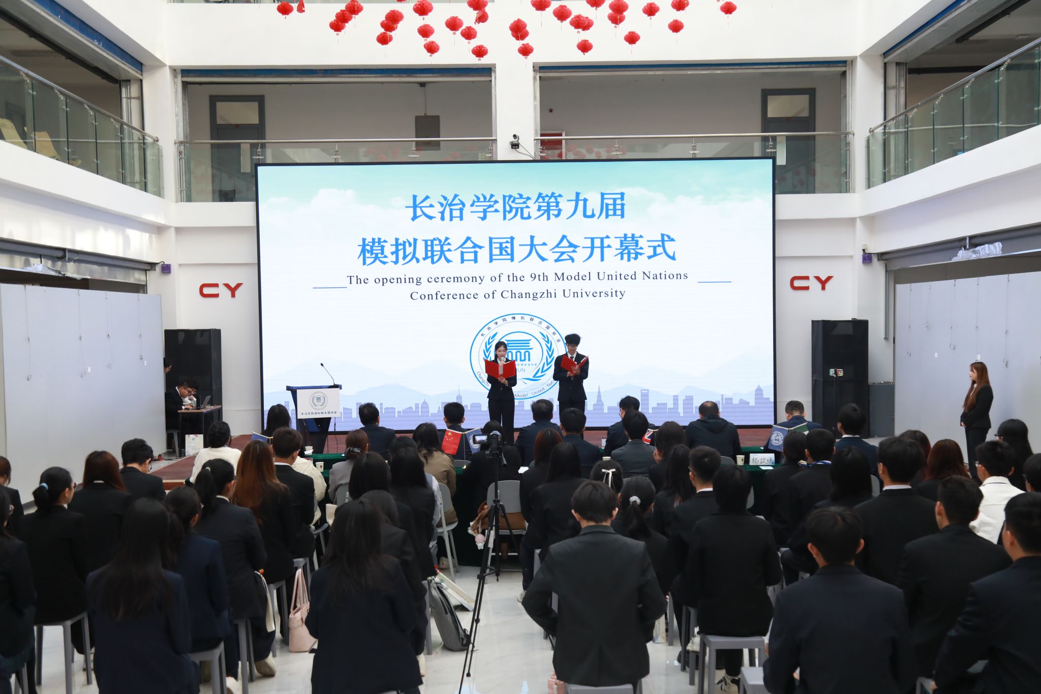 4月18日上午,我校第九届模拟联合国大会在南校区3号教学楼一层大厅举行。校党委副书记史晓东出席大会开幕式,学生工作部、校团委负责人,马克思主义学院党政负责人、师生代表及我校模拟联合国协会相关人员参加。