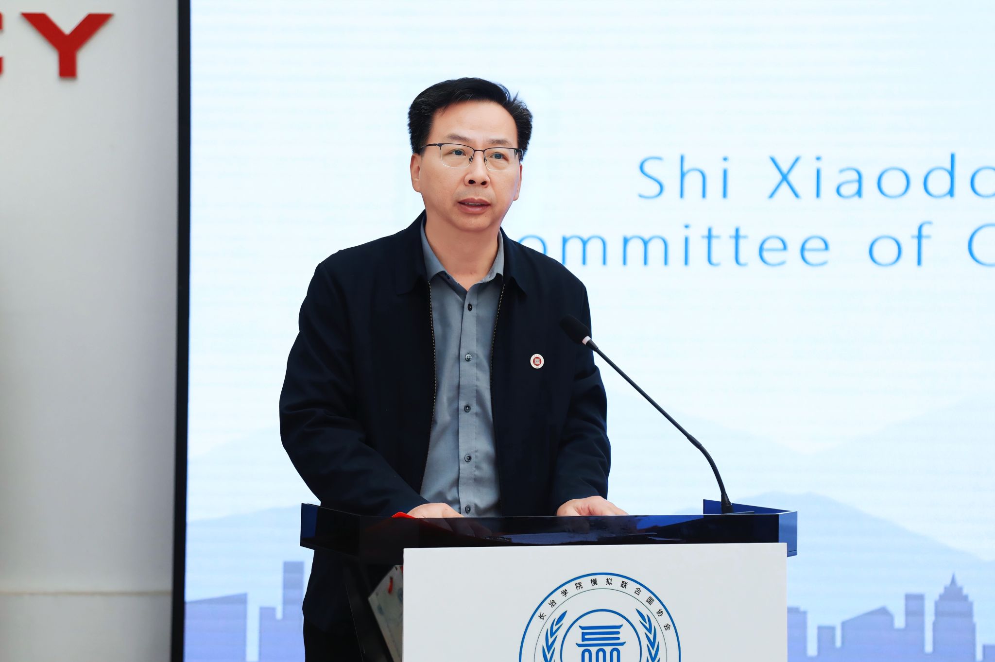 史晓东在致辞中表示,模拟联合国是青年学子开拓国际视野、锤炼综合能力的重要实践平台。他勉励参会学生,要立足中国、放眼世界,在模拟实践中深刻理解多边外交的规则与精神,在观点交锋与协作共商中提升跨文化沟通能力。他希望同学们以此次模拟活动为契机,厚植家国情怀、涵养世界眼光,充分展现当代中国青年的格局与担当。