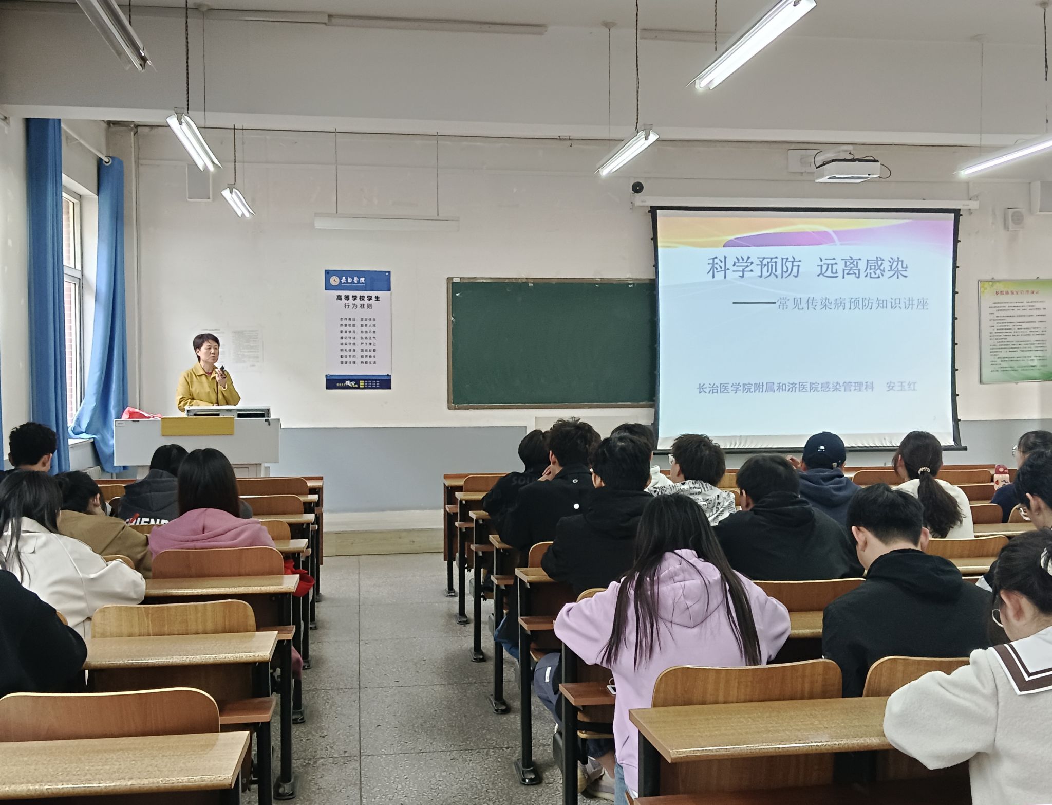 为有效预防春季传染病,我校后勤部与学工部邀请和济医院感染管理科安玉红医生为我校学生进行预防传染病专题知识讲座。讲座于3月17日和3月22日分别在北校区和南校区进行,各系部班长和生活委员共400余人参加。讲座由学工部副部长崔雅晋主持。