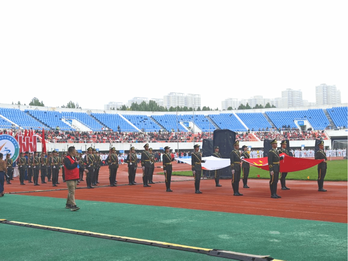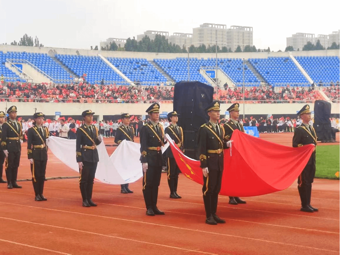 开幕式现场,伴随着激昂的《义勇军进行曲》,国旗护卫队队员,精神抖擞,目光坚毅,动作整齐划一,用标准的队列动作和庄重的神情,诠释着对国旗的敬畏与热爱,圆满出色地完成了本次护旗升旗任务,不仅为运动会开幕式增添了庄重色彩,更向社会各界展现了我校学子纪律严明、积极向上的良好风貌。