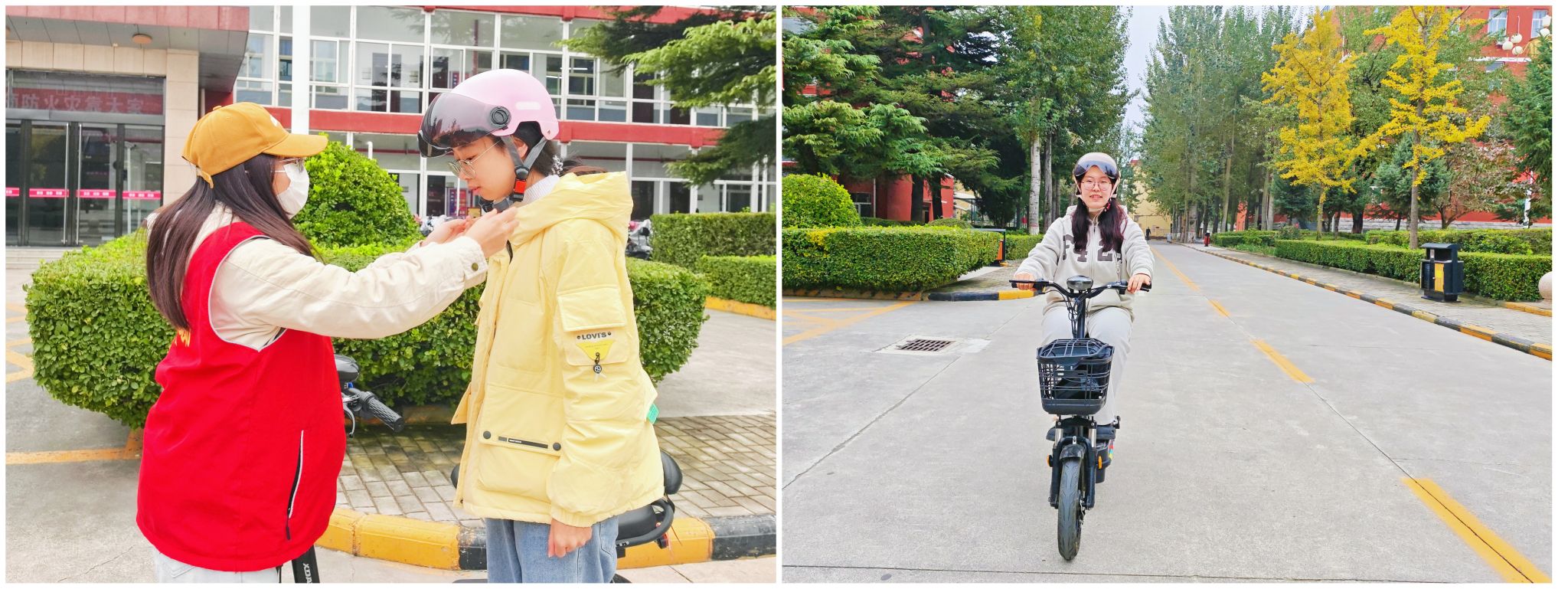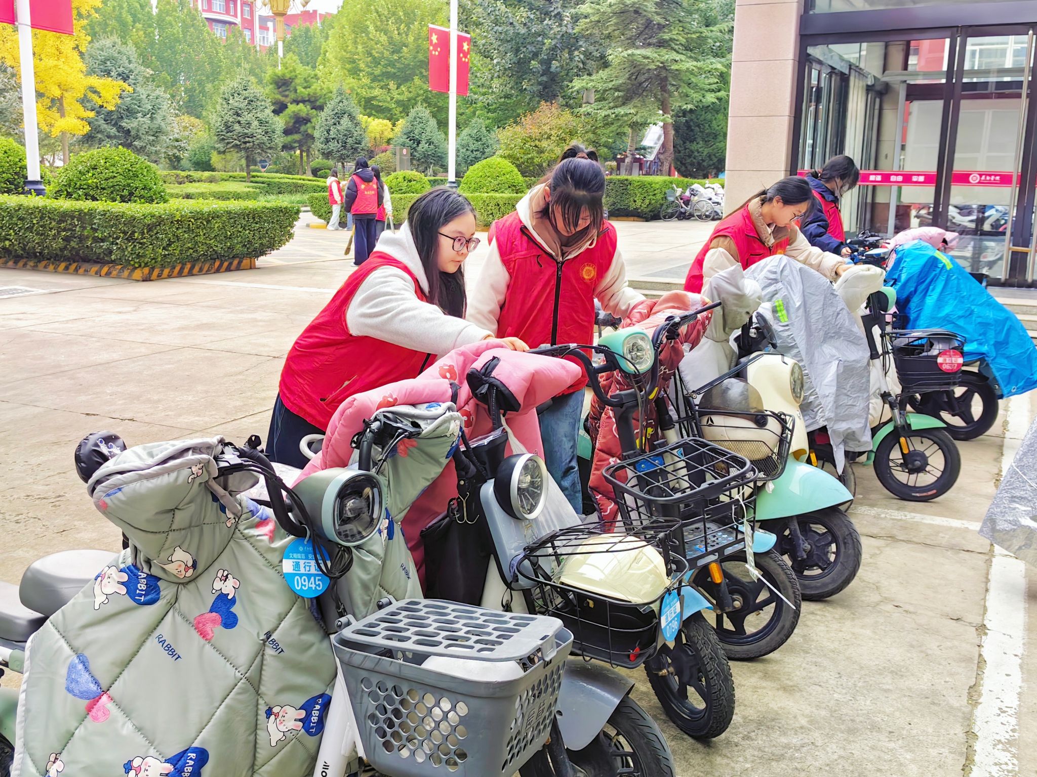 德育劳动的同学们积极担当起校园安全的“宣导者”与“守护者”。他们耐心细致地向同学们讲解电动车骑行规范,演示安全头盔的正确佩戴方法,将未按规定停放的电动车一一整理,引导其整齐“归位”,用实际行动于点滴细节中植入文明出行理念。