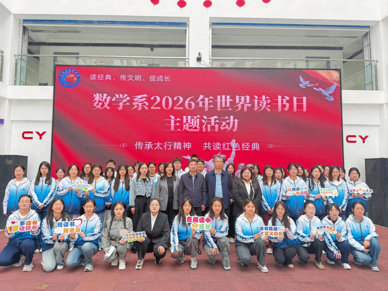 4月17日,在2026年世界读书日来临之际,数学系在南校区3号楼学术报告厅举办“传承太行精神 共读红色经典”世界读书日分享交流会。系领导班子成员、师生代表共同参加。